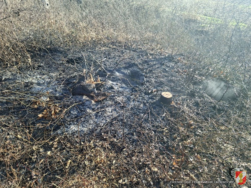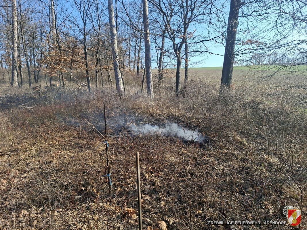 Aus bislang ungeklärter Ursache war in einem an die Bahnstrecke angrenzenden Windschutzgürtel ein Glimmbrand ausgebrochen. Betroffen waren mehrere Quadratmeter Waldboden sowie ein Wurzelstock.